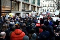 Protesters rally outside the Consumer Financial Protection Bureau (CFPB) on February 10, 2025 in Washington