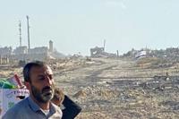 A man sits amid the rubble at the Fahmi Al-Jarjawi School in Gaza City