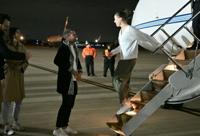 US-Russian ballerina Ksenia Karelina greets her boyfriend South African boxer Chris van Heerden as she arrives at Joint Base Andrews as part o…