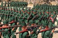 Members of the Mandalay People's Defense Forces rebel group marching in a graduation ceremony after training at a camp in an undisclosed locat…