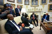 US President Donald Trump's (L) meeting with South African leader Cyril Ramaphosa (R) promises to be tense