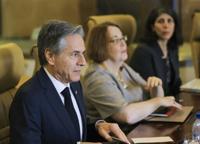 Molly Phee (center), the US assistant secretary of state for African affairs, sits next to Secretary of State Antony Blinken during a meeting …