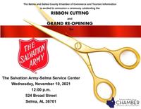 A grand re-opening and ribbon cutting will be held for the Salvation Army-Selma Service Center on Wednesday, Nov. 10.