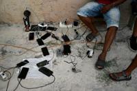 Cubans charge their cell phones during a nationwide blackout caused by a power grid failure in Havana