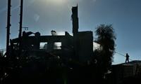 A firefighter douses a structure burned by the Palisades Fire in the Pacific Palisades neighborhood of Los Angeles