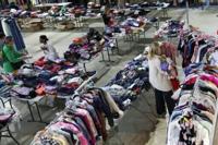 People affected by the Los Angeles fires visit a relief center looking for supplies