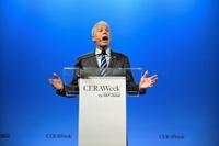US Secretary of Energy Chris Wright addresses attendees of the Cambridge Energy Research Associates conference in Houston, Texas