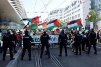 National News Complaint filed over 'throat-slitting gesture' at Eurovision protests: Israeli broadcaster Stefan Wermuth May 11, 2025 Police officers stand guard in front of protesters waving Palestinian flags during the Eurovision opening ceremony