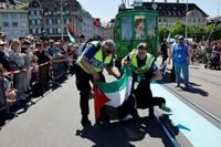 National News Complaint filed over 'throat-slitting gesture' at Eurovision protests: Israeli broadcaster Stefan Wermuth May 11, 2025 Police officers tackled a protester holding a Palestinian flag during the Eurovision Song Contest opening parade