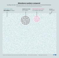 National News Attendance numbers compared Nicholas SHEARMAN Feb 26, 2025 Infographic chart comparing the crowd sizes at 2025 Kumbh Mela Hindu festival, 2024 Arbaeen pilgrimage in Iraq and the 2024 Paris Olympics