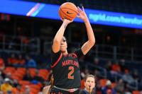 Nov 13, 2024; Syracuse, New York, USA; Maryland Terrapins guard Kaylene Smikle (2) shoots the ball against the Syracuse Orange during the firs…