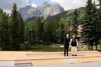 Canadian Prime Minister Mark Carney greets Indian Prime Minister Narendra Modi before a group photo during the Group of Seven summit ain Kanan…