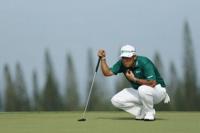 Japan's Hideki Matsuyama lines up a putt on the way to the 54-hole lead in the US PGA Tour Sentry Tournament