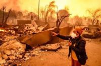 Margaret Larkin views her burned home during the Eaton fire in the Altadena area of Los Angeles county