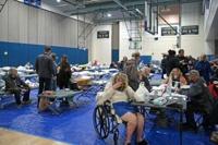 Evacuees from the Palisades fire at an evacuation and shelter center at Westwood Recreation Center in Los Angeles