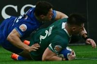 Three of a kind: Ireland hooker Dan Sheehan scores one of his hat-trick of tries against Italy