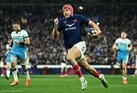Record: France wing Louis Bielle-Biarrey runs to score his team's second try against Scotland