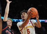 National No. 3 Iowa State knocks off Utah for 10th straight win Nirmalendu Majumdar/Aems Tribune / USA TODAY NETWORK via Imagn Images Jan 7, 2025 Iowa State Cyclones guard Curtis Jones (5) shoots the ball around Utah Utes forward Zach Keller (32) during the first half in the Big-12NCAA m…