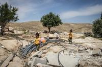 Standing in the rubble of what used to be his home, Palestinian farmer Haitham Dababseh cleared stones to make space for a tent after Israeli …