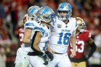 National News Lions beat 49ers in final tuneup for NFL showdown with Vikings EZRA SHAW Dec 30, 2024 Detroit's Jared Goff, right, celebrates a touchdown pass with teammates as the Lions improved to 14-2 with an NFL triumph at San Francisco