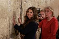 US Homeland Security Secretary Kristi Noem (C) and Janet Huckabee (R), wife of US Ambassador to Israel Mike Huckabee, visit the Western Wall o…