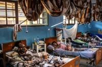 Wounded women lay in Bukavu following clashes during the ongoing M23 advance