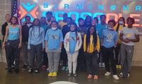 Kristin Bethel, Aereonna Manuel, and Amaya Pritchett with their families at the Saints volleyball court.