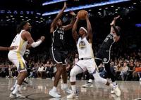 Stephen Curry heads for the net in the Golden State Warriors' come-from-behind win over the Brooklyn Nets