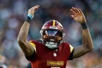 National News Daniels throw five TDs as Commanders down Eagles Timothy Nwachukwu Dec 22, 2024 Washington quarterback Jayden Daniels celebrates a touchdown pass in the Commanders' NFL victory over the Philadelphia Eagles