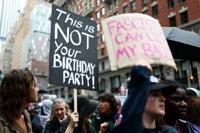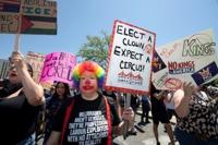 Some protesters took aim at the $45 million military parade in Washington on Trump's 79th birthday