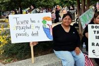Many signs mocked President Donald Trump and his attacks on undocumented migrants
