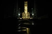The New Glenn rocket is seen during a hot fire test at the Cape Canaveral Space Force Station in Cape Canaveral, Florida on December 27, 2024