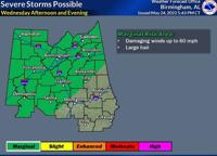 Counties in the Black Belt region are under a marginal risk for severe weather on Wednesday morning.