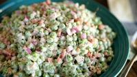 Made with frozen peas, mayonnaise, ranch dressing, red onion and diced ham, this dish makes a perfect side for nearly any occasion. (Stacey Li…