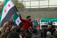 Brandishing the flag of the opposition, dozens of Syrian refugees in Iraq's Kurdistan region on Sunday celebrated the fall of Bashar al-Assad,…