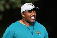 Oct 17, 2024; Watford, United Kingdom; Jacksonville Jaguars running backs coach Jerry Mack during practice at The Grove. Mandatory Credit: Kir…