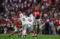 National NCAA Football: Mississippi State at Georgia Brett Davis-Imagn Images Dec 11, 2024 Oct 12, 2024; Athens, Georgia, USA; Georgia Bulldogs defensive lineman Xzavier McLeod (94) deflects the pass of Mississippi State Bulldogs qua…