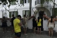 People gather in front of the house where the movie 'I'm Still Here' was shot in Rio de Janeiro