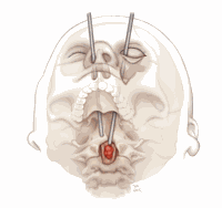 Lifestyle First-Of-Its-Kind Surgery Uses Eye Socket To Remove Spinal Cancer May 13, 2025 Illustration of Transorbital Surgical Path to Spinal Chordoma