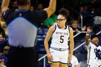 National Top 25 roundup: Olivia Miles (triple-double), No. 6 Notre Dame roll Michael Clubb / USA TODAY NETWORK via Imagn Images Jan 6, 2025 Notre Dame guard Olivia Miles (5) celebrates making a three pointer during an exhibition game against Davenport on Wednesday, Oct. 30, 2024, a…