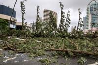 A fallen tree lies across a road in Coolangatta on Australia's Gold Coast