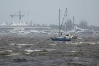 A man stands on a yacht off Australia's storm-battered Gold Coast