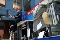 U.S. Secretary of Transportation Sean Duffy speaks alongside dated air traffic control equipment at an event unveiling a new U.S. control syst…