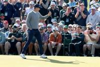 England's Justin Rose celebrates a birdie at Augusta National's par-5 second hole in the second round of the 89th Masters