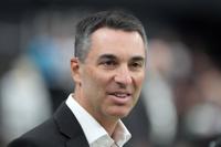 Sep 22, 2024; Paradise, Nevada, USA; Las Vegas Raiders general manager Tom Telesco watches from the sidelines against the Carolina Panthers Al…