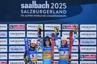Italy's Federica Brignone laid down the two fastest runs to win gold in the women's giant slalom at the World Ski Championships in Saalbach on…