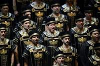 The choir performs during Giuseppe Verdi's "Aida" at New York's Metropolitan Opera, the first new production of the famed opera in more than t…