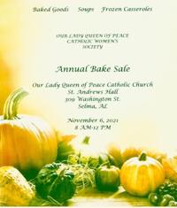 News Our Lady Queen of Peace Catholic Women's Society to hold bake sale this weekend Nathan Prewett Nathan Prewett Nov 2, 2021 Our Lady Queen of Peace Catholic Women's Society will hold their annual bake sale this weekend on Saturday, Nov. 6 from 8 a.m. to 12 p.m.Â