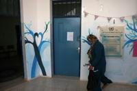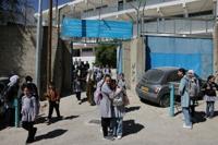 Palestinian schoolgirls leave a UNWRA school in the Shuafat refugee camp