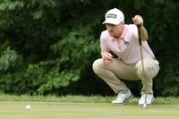 American Brian Campbell lines up a putt on the way to a playoff victory in the US PGA Tour John Deere Classic in Illinois